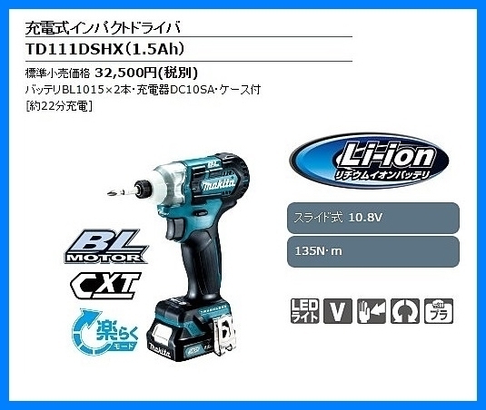 > マキタ 10.8V 充電式インパクトドライバ TD111DSHX (青) [1.5Ah]■安心のマキタ純正/新品/未使用■