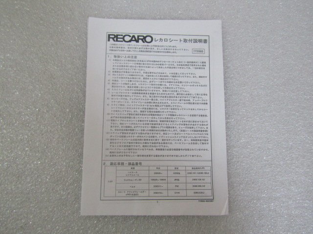 - レカロ RECARO シート取付説明書 TY2085 / ハイエース ランクル80 ベルタなど
