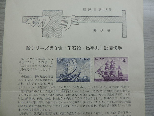 - ★千石船・昌平丸★ 船シリーズ 郵政省・解説書貼り付け 昭和51年 50円×2枚 新品・未使用