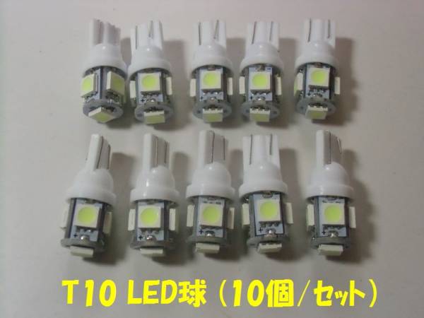 - 汎用5連LED T10ウエッジ球 【ホワイト×10個セット】