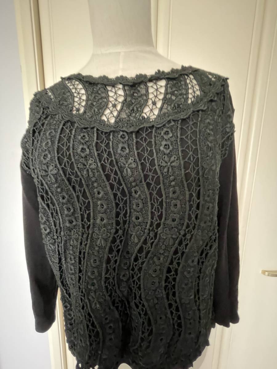 - 美品・7分袖カットソー・7分袖ブラウス・レースブラウス・ブラック・Lサイズ相当・300円