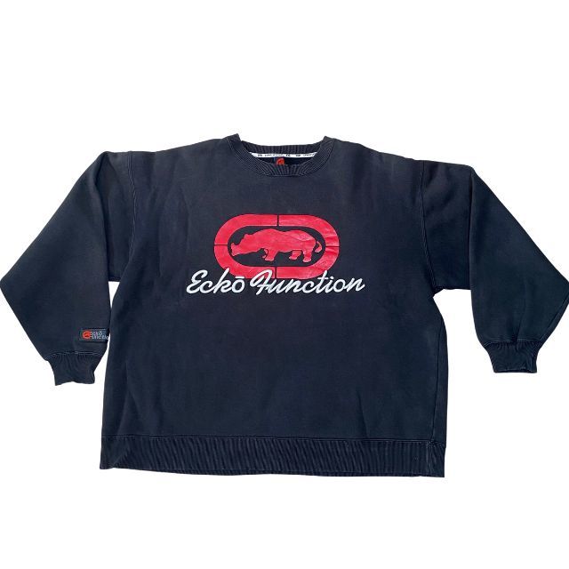 - エコーファッション ヴィンテージ ビッグロゴ スウェットトレーナー EcKo Function 刺繍&ラバープリント ブラック Y2K 雅瀬72