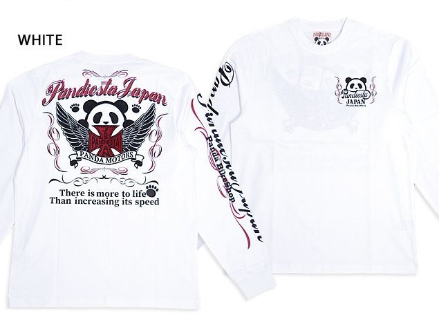 - ピンストライプパンダロングTシャツ◆PANDIESTA JAPAN ホワイトMサイズ 533600 パンディエスタジャパン 刺繍 長袖