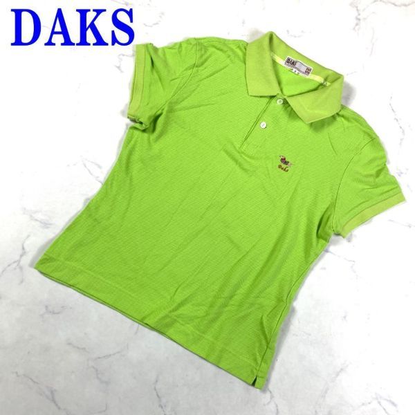 > ダックス 半袖ポロシャツ 綿 刺繍 ワンポイント 黄緑色 DAKS コットン ライトグリーン 犬 ダックスフンド 2 C7081