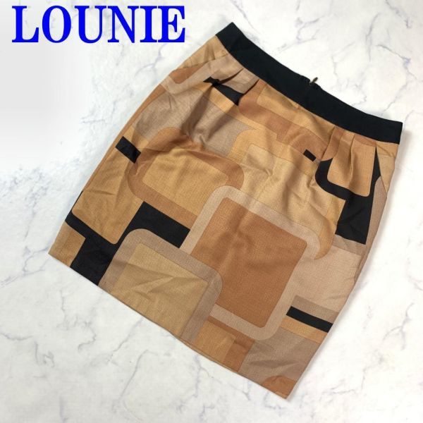 - ルーニィ ひざ丈スカート タイト 総柄 裏地あり 茶色 LOUNIE キャメル ブラウン 40 C7241