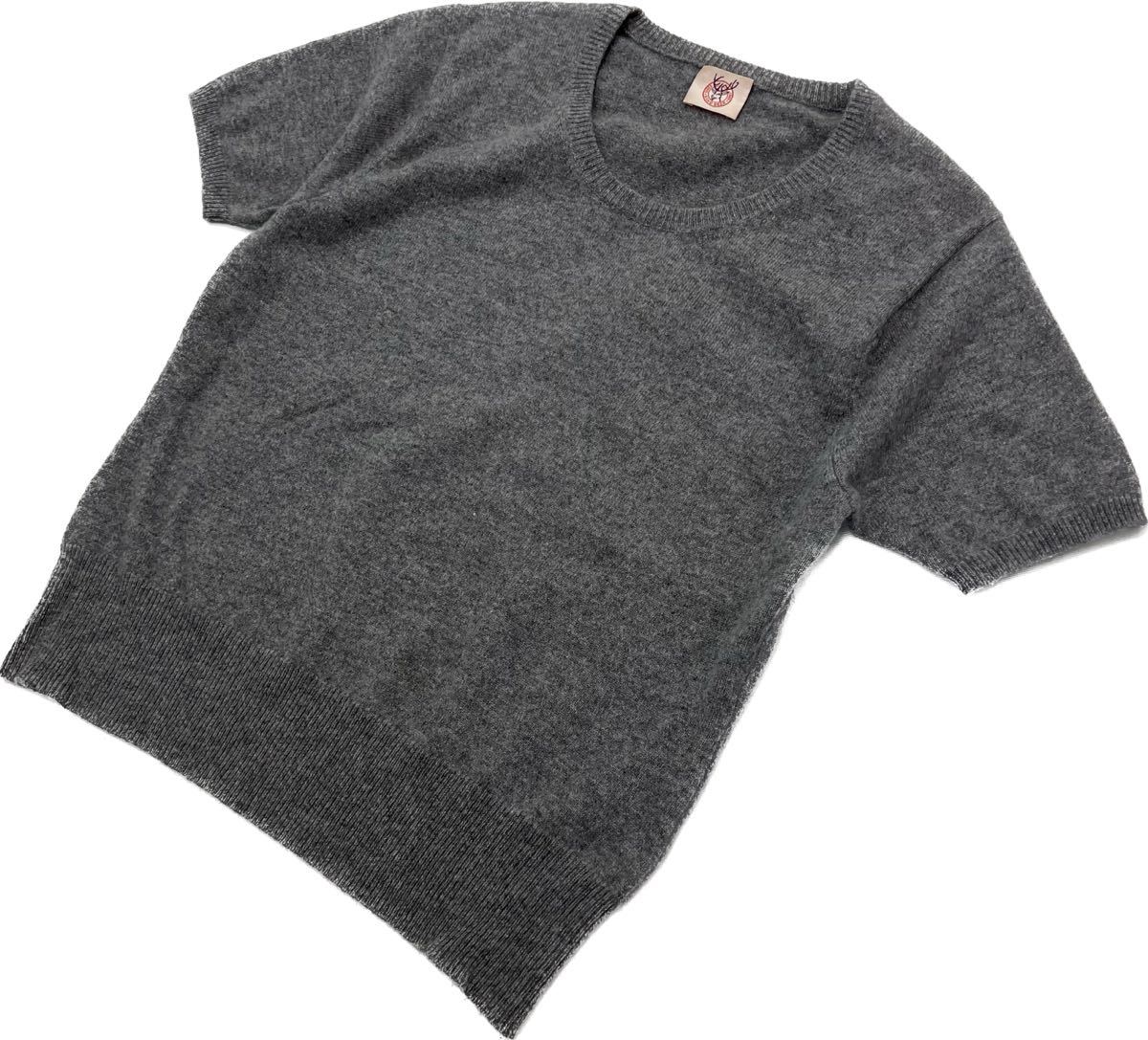 - KINGDEER ☆ 上質 高級 サマーニット カシミア 半袖 シャツ グレー レディース M相当 秋冬 インナー 大人カジュアル キングディア ■S2513