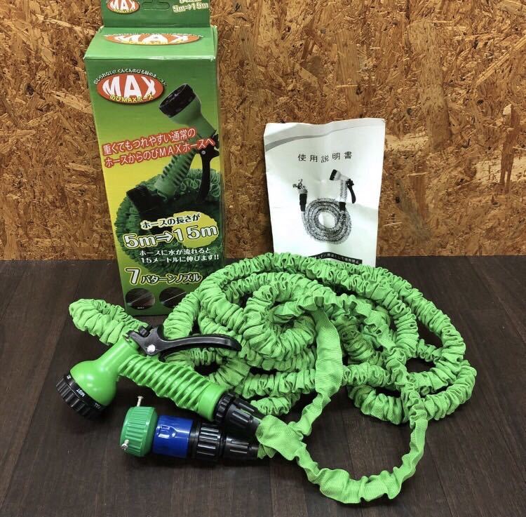 - YK-4841 #50 中古品 ハンディ.クラウン のびMAX ホース 緑色 長さ 5m→15m 7パターンノズル ガーデニング 庭 掃除 清掃 蛇口適合 14-18mm