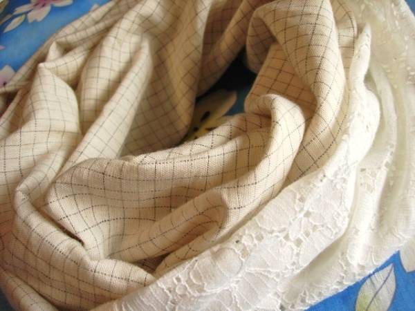 - ソフトスヌード★アイボリーCHK&花レース ハンドメイド