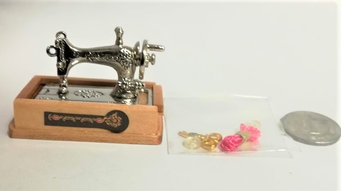 - ミニチュア★ミシン★ウッド★ハサミ&糸&ボタン付き★ソーイングセットが収納できる引き出し付き★色違いあります★ドールハウスに★