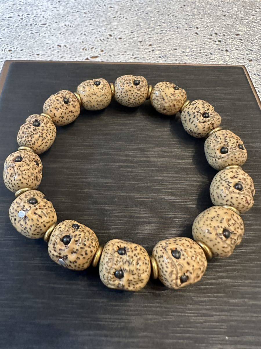 - V-373 文玩 天然 海南星月菩提 屍陀林主 ドクロ ブレスレット 男女兼用