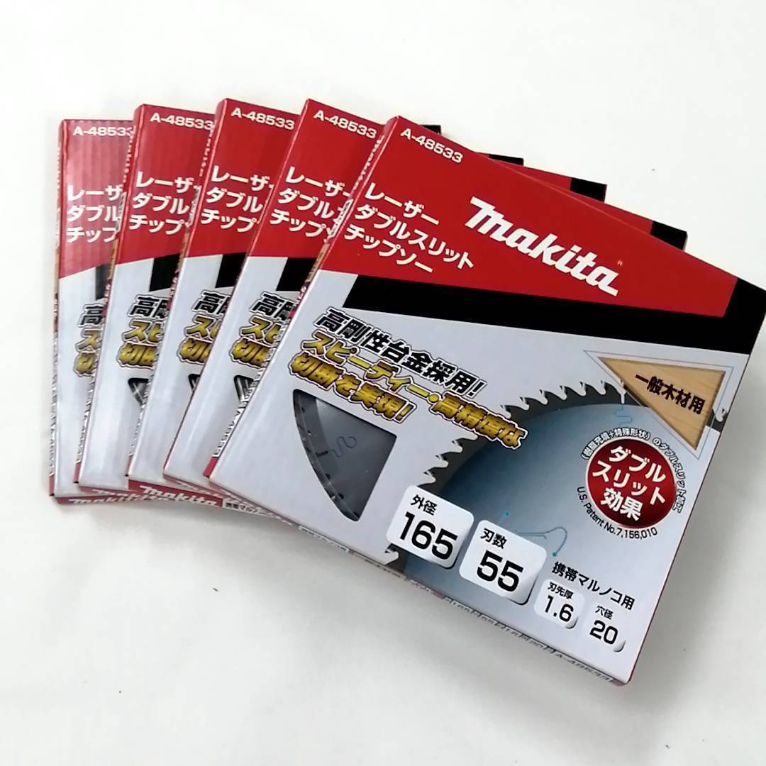 > マキタ 165mm ダブルスリットチップソー A-48533×5枚 (55枚刃) [高剛性タイプ]【一般木材用】■安心のマキタ純正/新品/未使用■