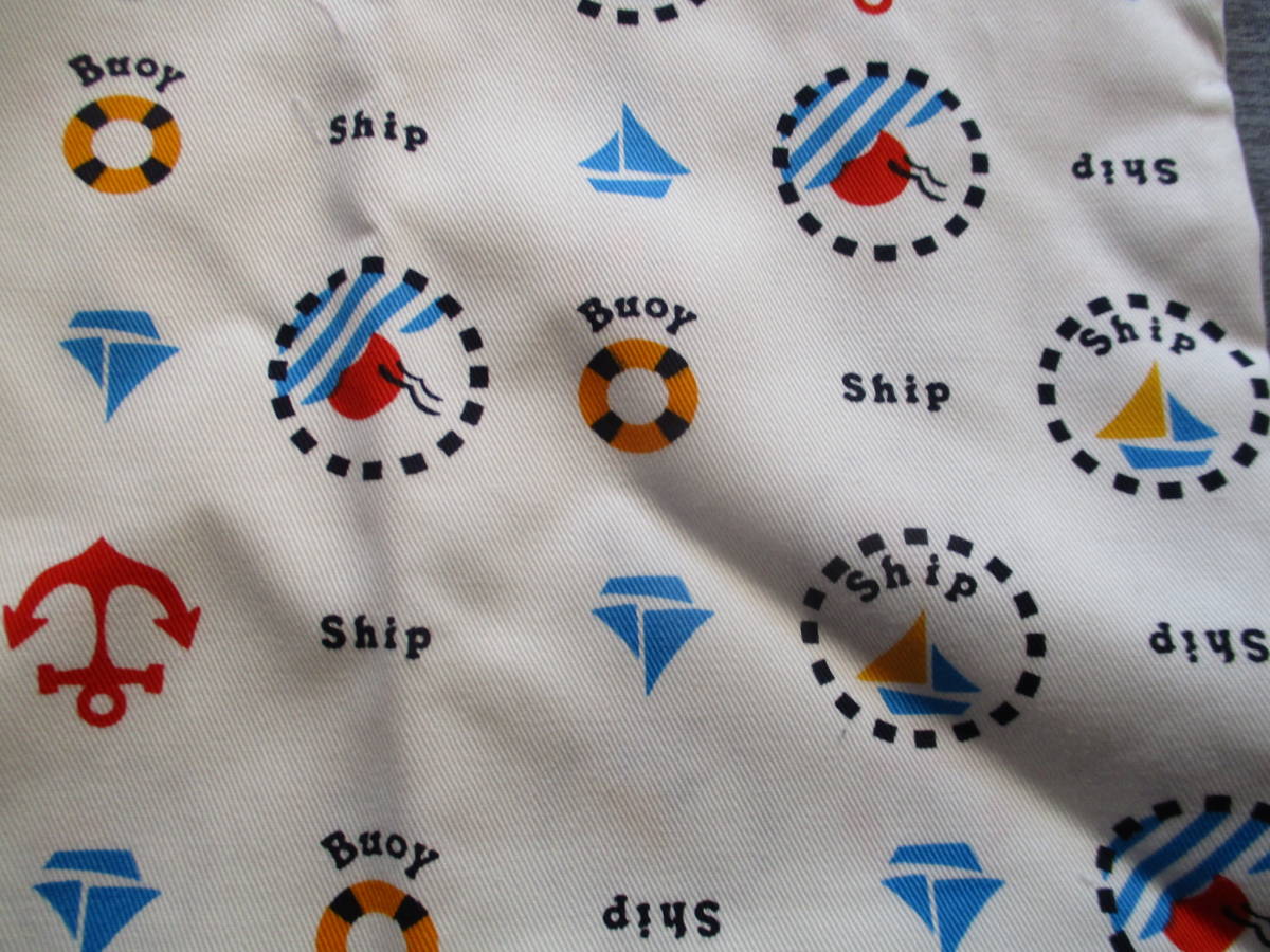- 送料180円ハギレ生地布地白シップヨット船いかり浮き輪