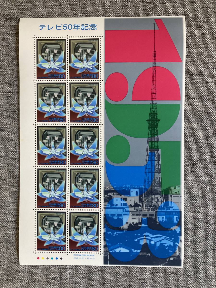 - ★未使用 テレビ50年記念 テレビ局タイトルの鳩 街頭テレビ 日本テレビ放送網(株)のテレビ塔 平成15年 2003年 切手シート 80円10枚