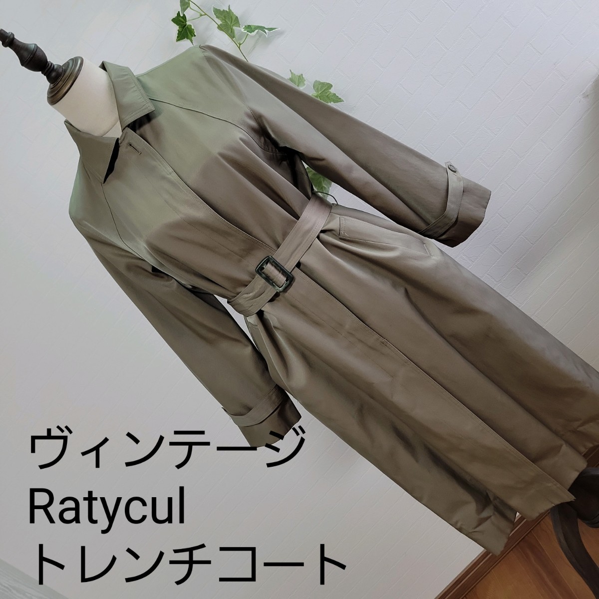 - ヴィンテージ Ratycul レディース ライナー付きコート カーキグリーン 光沢感 S~Mくらい トレンチコート ビジネスコート 通勤に
