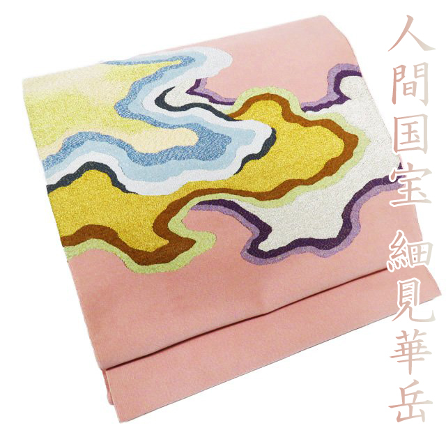 - 特選 細見華岳 名古屋帯 中古 リサイクル 正絹 カジュアル 仕立て上がり 落款 綴れ織 霞 鳳凰 一斤染色 多色 金銀 きもの北條 A943-15