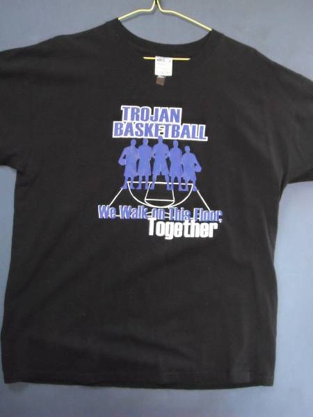 - ⑥ USA古着 サイズL 前TROJAN BASKETBALL 黒色半袖バスケTシャツ