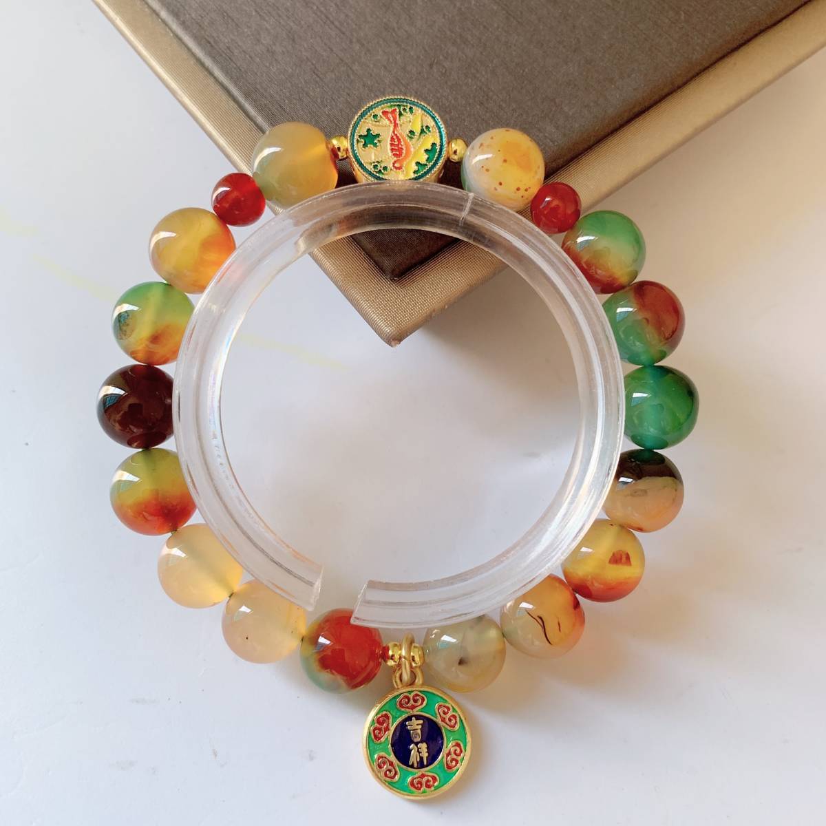- ◇ピーコック アゲート+赤瑪瑙◇メノウ◇ブレスレット◇パワーストーン◇天然石◇巾着袋付き◇プレゼントにも 021B110402