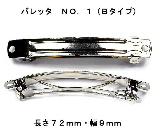 - アクセサリーパーツ ヘアー用金具 バレッタ NO.1 タイプB 長さ72mm 幅9mm 銀色 シルバーカラー 2コ入り