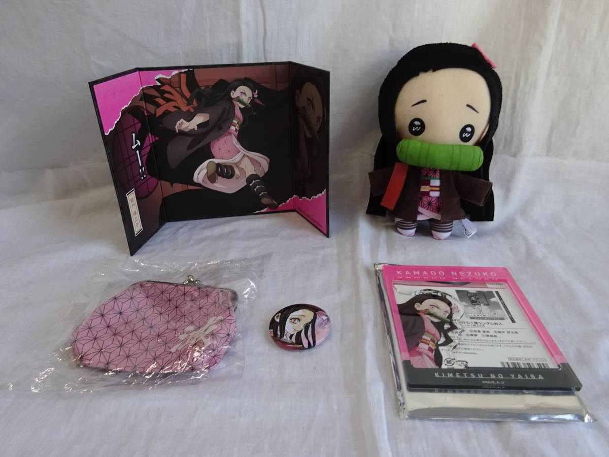 - ★☆D-1106 鬼滅の刃 竃門禰豆子 グッズ キメツ(ぬいぐるみ、アクリルフレーム、缶バッジ、財布、ミニ屏風)5点セット☆★