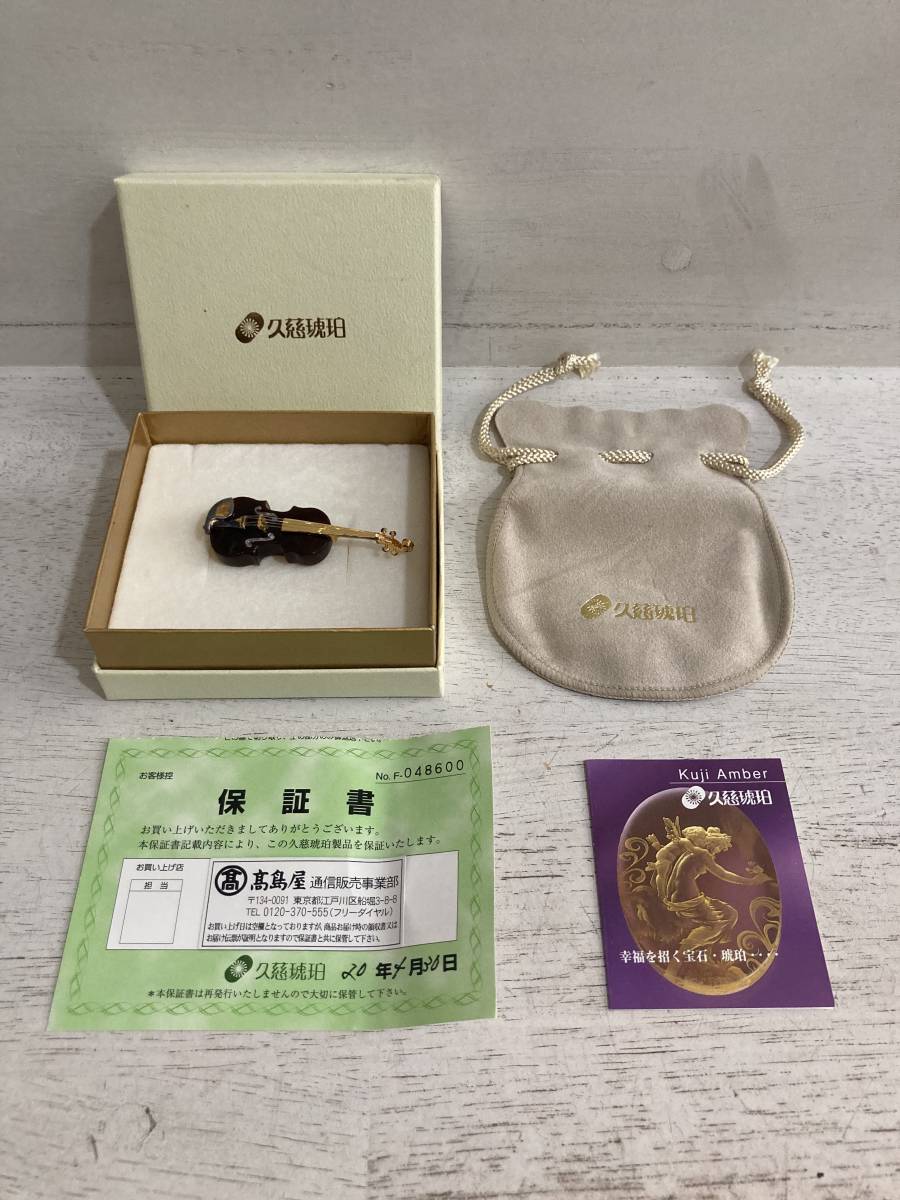 - 久慈琥珀 バイオリン ブローチ USD Kuji Amber Viorine Brooch