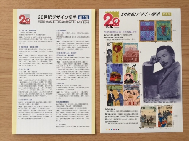 - 20世紀デザイン切手 第1集 解説文付き 1シート(10面) 切手 未使用 1999年