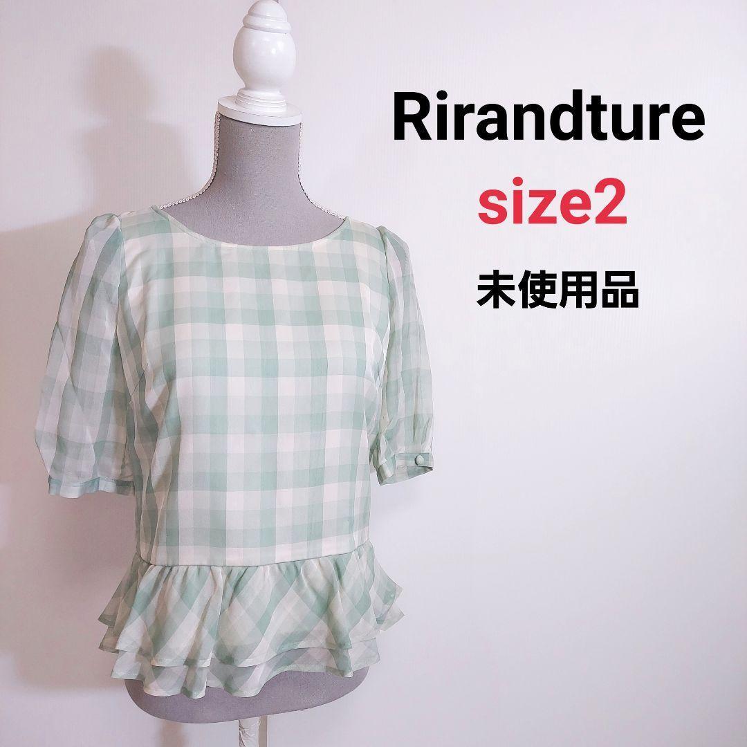 - Rirandture 裾フリル・チェック柄プルオーバー半袖トップス 袖シースルー 表記サイズ2 M ライトグリーン&クリーム・パステルカラー80946