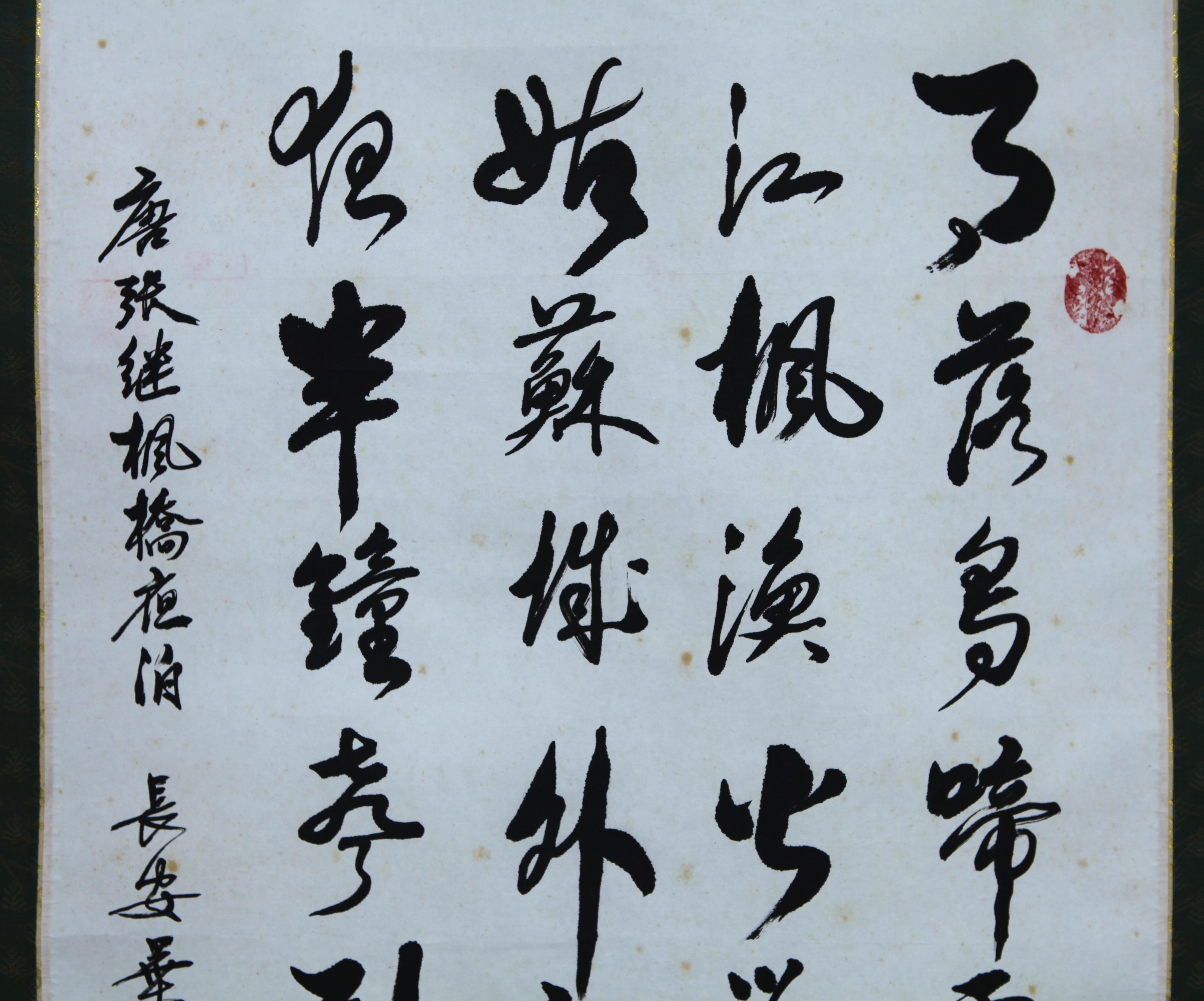 - 【真作】【風車】 葉学義 「楓橋夜泊」◎肉筆紙本◎陝西省臨潼人 両手篆書名家 中国書協会員 陝西書協理事 陝西省書法家協会秘書長