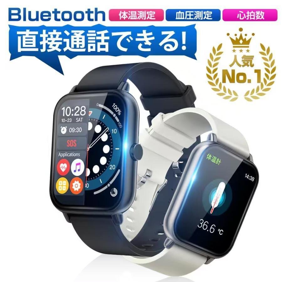 > 【ゲーム・通話機能付き】 スマートウォッチ 24時間体温監視 1.69インチ大画面 血圧測定 男女兼用 血中酸素測定 SNS 着信通知 IP67防水