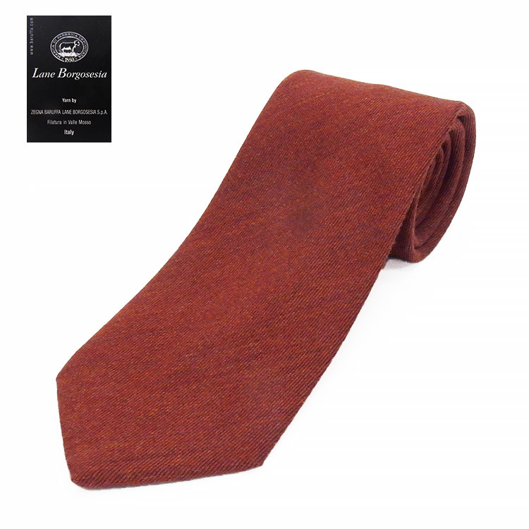 - ウールネクタイ 伊ゼニアバルファ社 キャッシュウール レンガ色/無地調 日本縫製 zeg147
