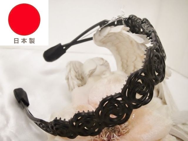- ♪ 新品 カチューシャ 日本製『高品質/頭が痛くならない/WOOD/木/ウッドコーティング/ローズ/薔薇/しっかりとまるコーム付/ダークブラウン