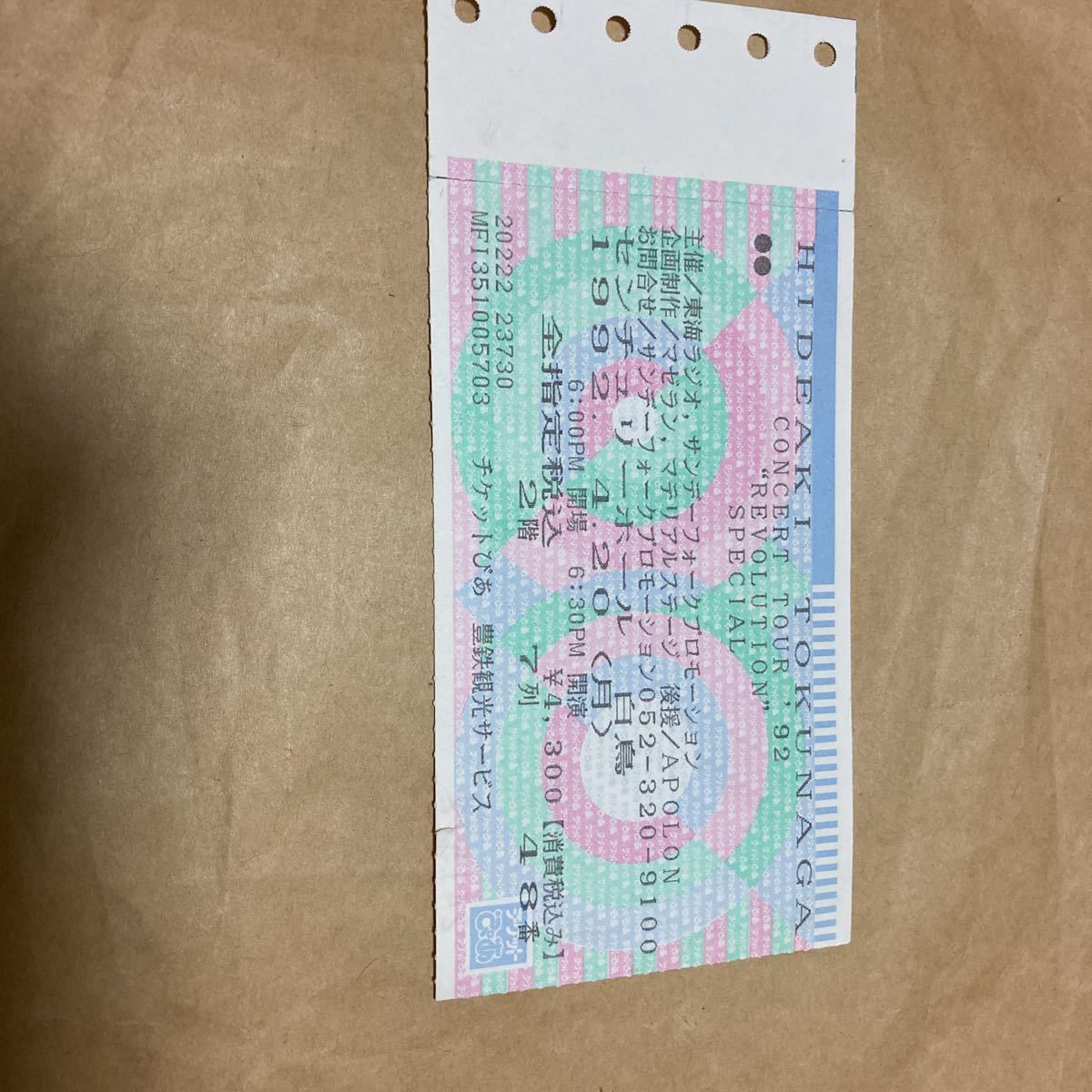 - 送料390円 徳永英明 1992年4月20日 コンサートチケット半券 HIDEAKI TOKUNAGA CONCERT TOUR 92 Revolution 名古屋センチュリーホール