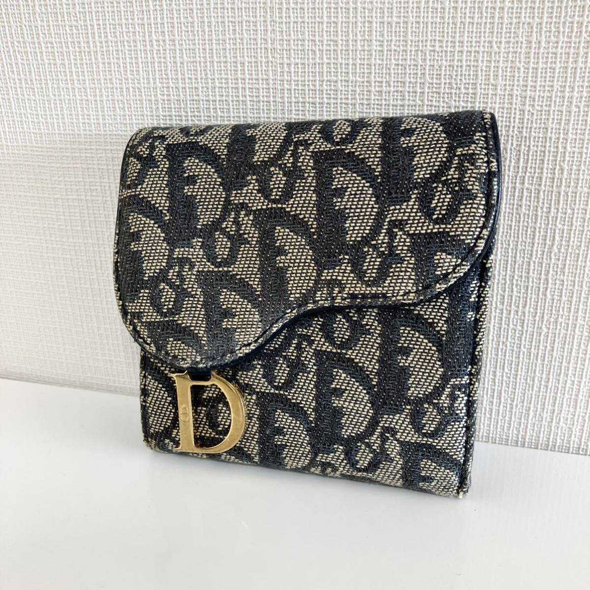 - Dior クリスチャン ディオール サドル トロッター 二つ折り財布 ネイビー