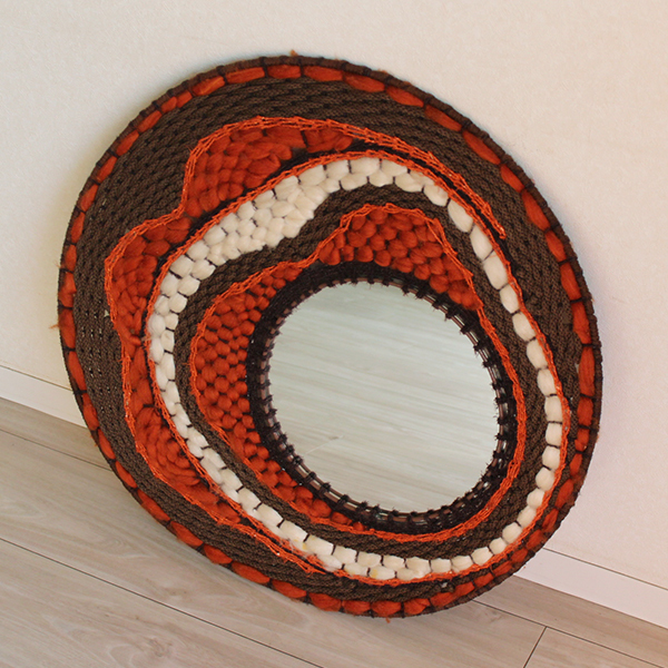 - アメリカ製ビンテージ ニット編みフレーム ネイティブアメリカンカラー ウォールミラー 076
