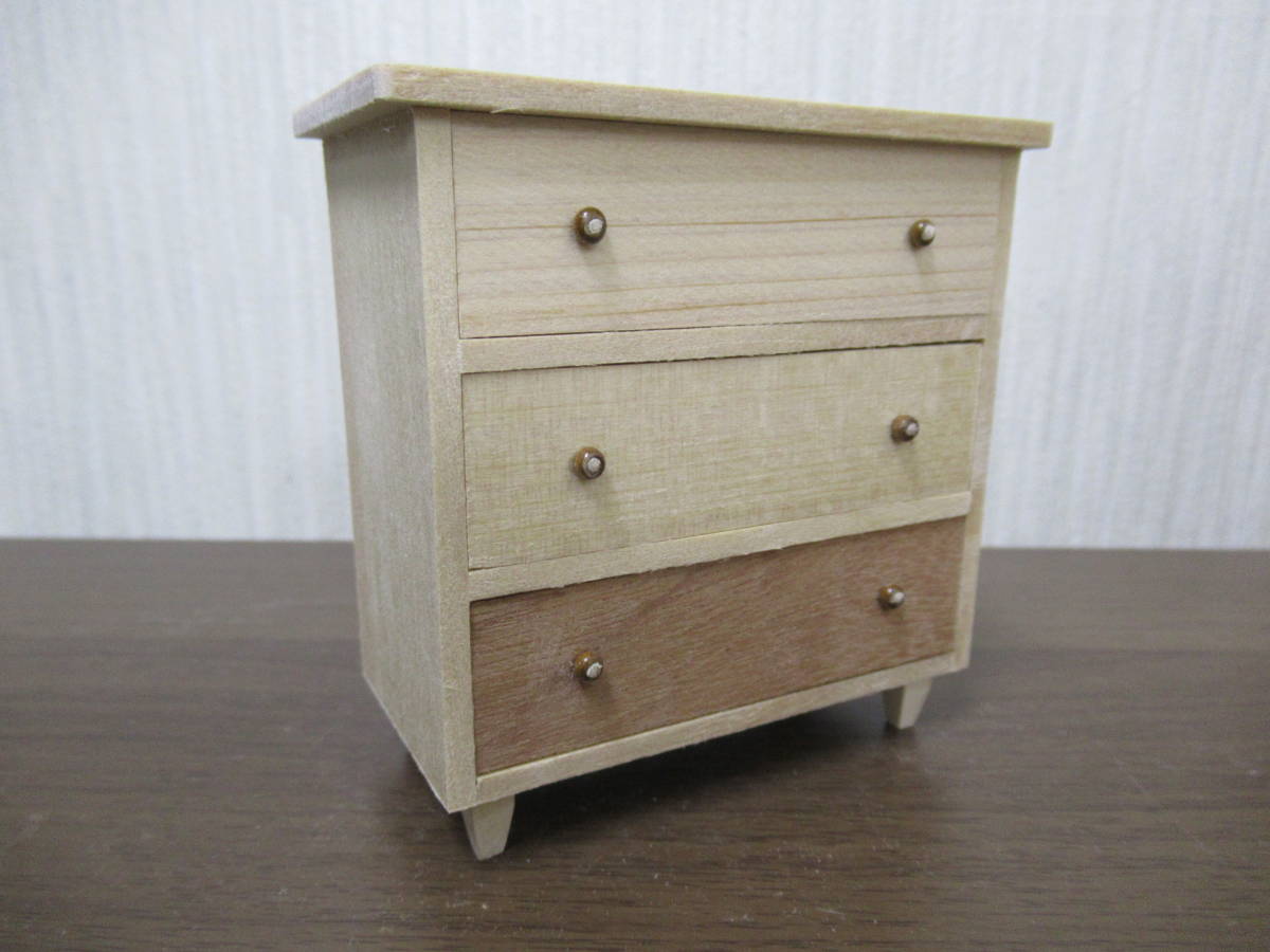 - ハンドメイド★ミニチュア★1/12スケール★木製家具★三段チェスト★C