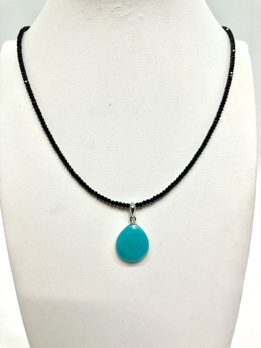 - 【新品】アマゾナイトネックレス/天然石ネックレス/一点物/ブラックスピネル/シンプル/雫しずく型/ティアドロップ/涙型/ハワイアンブルー