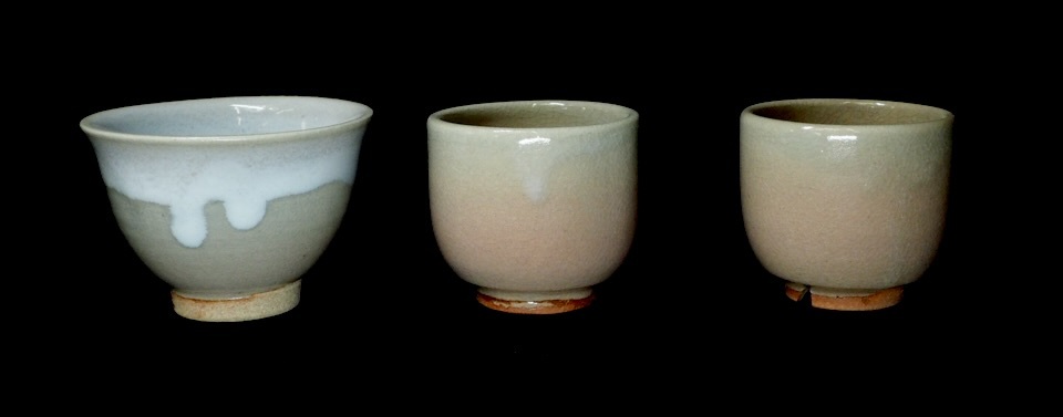 - 優しい色合いの湯呑み!ビンテージ 萩焼 湯呑み3客セット 在銘品 煎茶道具 煎茶器 茶器 箱無し 1990年代 CKY512