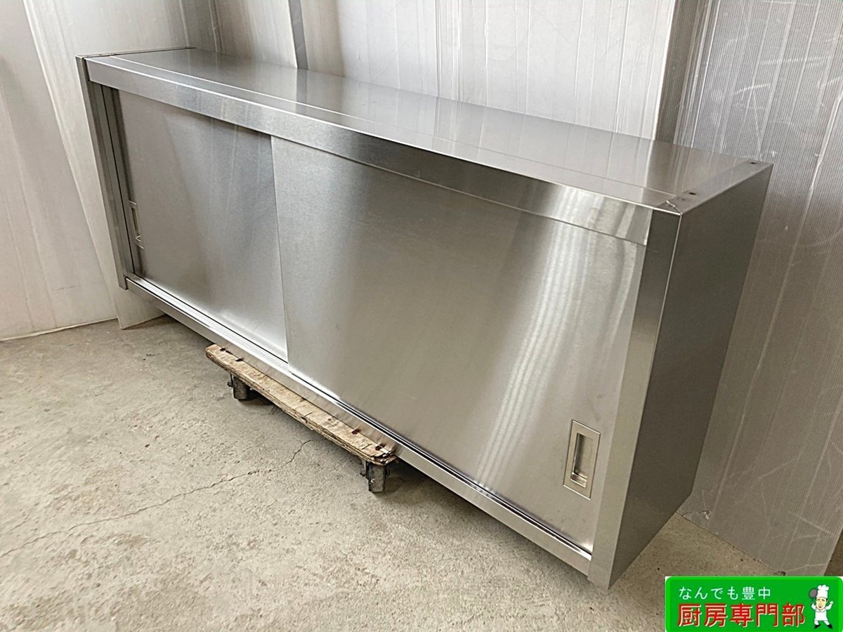 > ◆業務用ステンレス製吊戸棚 壁付け食器棚 中段自在棚(2分割)1段付き W1500×D300×H600 中古厨房◆ cb092b