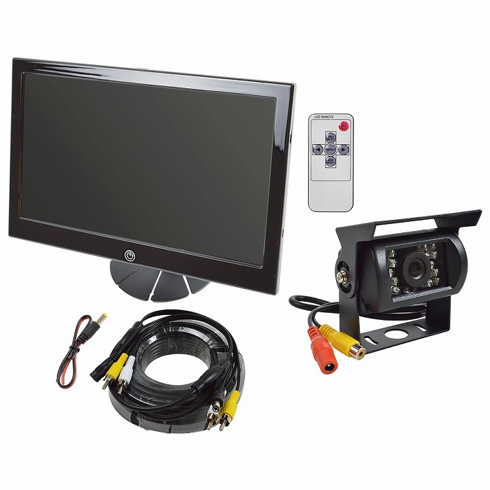 > 【3点セット】大画面 12V オンダッシュモニター 10インチ + 暗視 LED バックカメラ 20m 延長ケーブル ダッシュボード