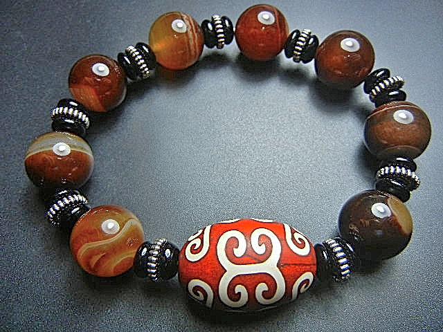 - ★西蔵天珠数珠★JFV2440 マダガスカル瑪瑙 数珠 巨大16mm朱砂如意天珠付き20*29mm超勧め
