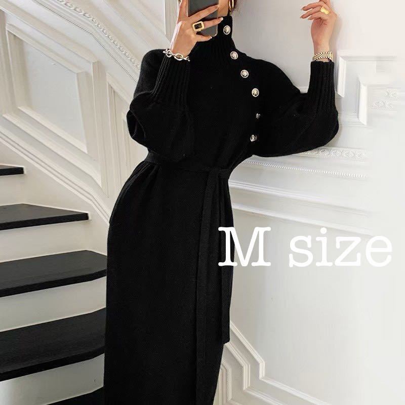 - ワンピース ニット ロングワンピース ニットワンピース タイト 大好評 ドレス パーティ ブラック 黒 M