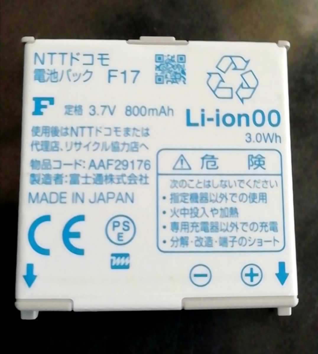 > 【中古】NTTドコモF17純正電池パックバッテリー【充電確認済】F-02A/F-04A/F-05A/F-08A/F-10A/F-02B/F-03B/F-08B/F-09B/F-08F/F903i/F902is