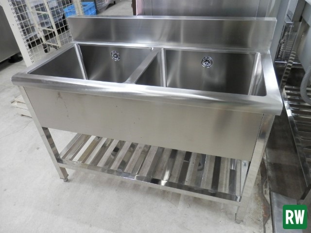 - SUS304 二槽シンク BG付 W1200×D600×H800 業務用シンク 流し台 2槽 [6-196703]