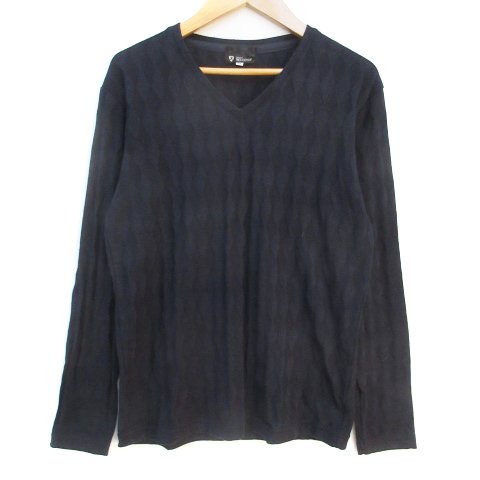 - ティーケーミクスパイス タケオキクチ THE SHOP TK MIXPICE カットソー 長袖 Vネック ダイヤ柄 M 紺 ネイビー /FF38 メンズ