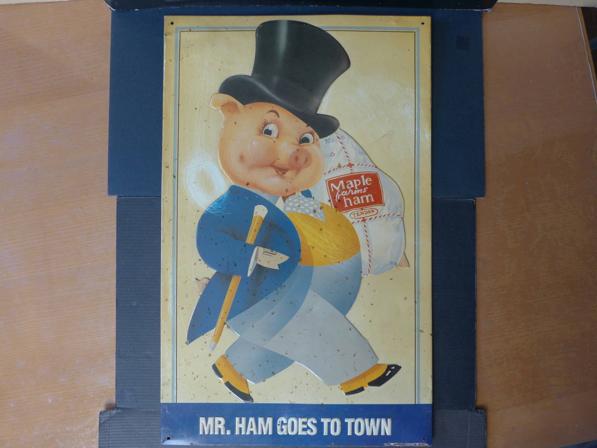 - ★ レア 時代物 メープル・ファーム・ハム Maple farms ham ブリキ看板 ディスプレイ看板 レトロ アンティーク ★