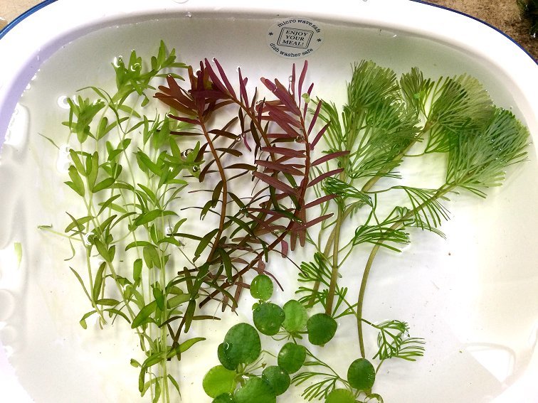 - ☆送料無料! ミナミヌマエビ5匹+1匹・無農薬 水草4種セットB 専用ボックス発送 メダカ水槽に♪