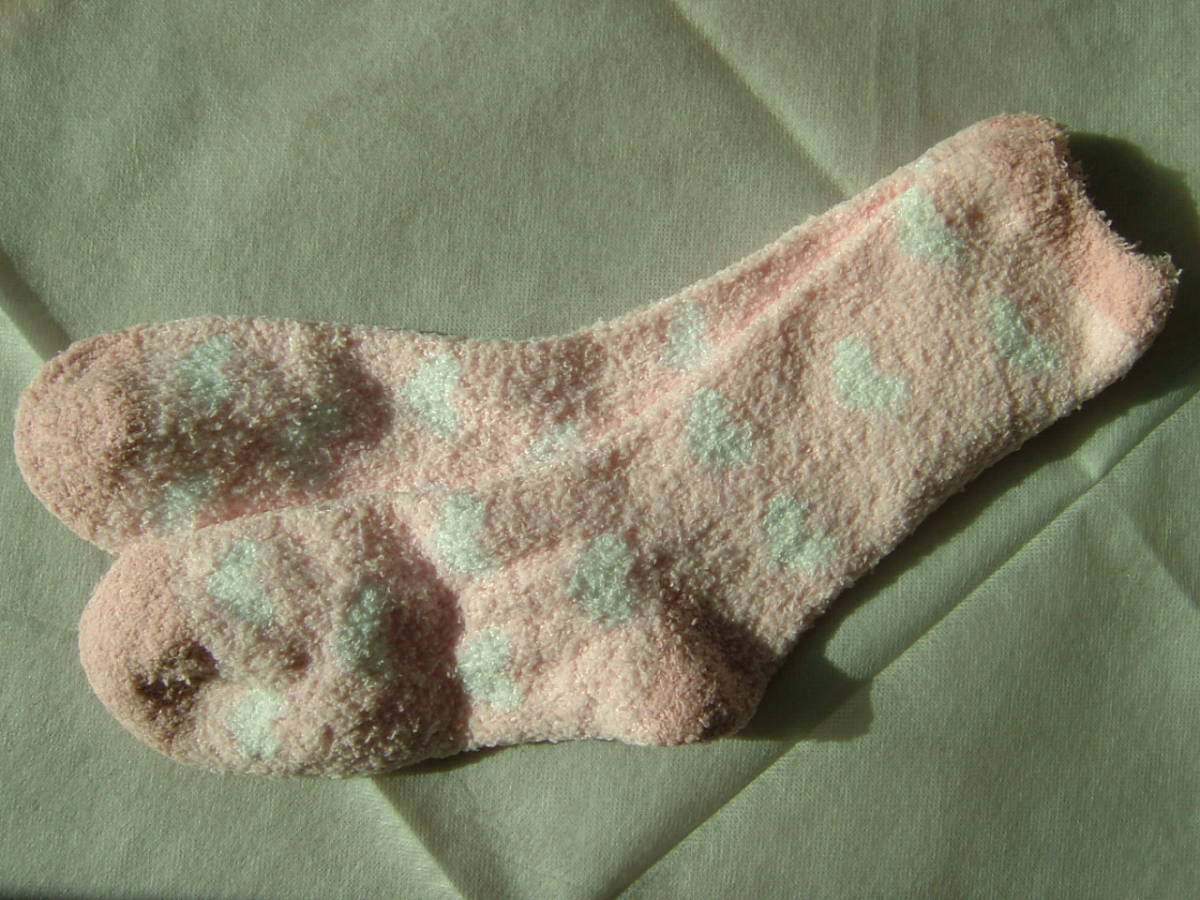 - フワフワソックス 薄ピンク ハート マシュマロ靴下 フリースソックス