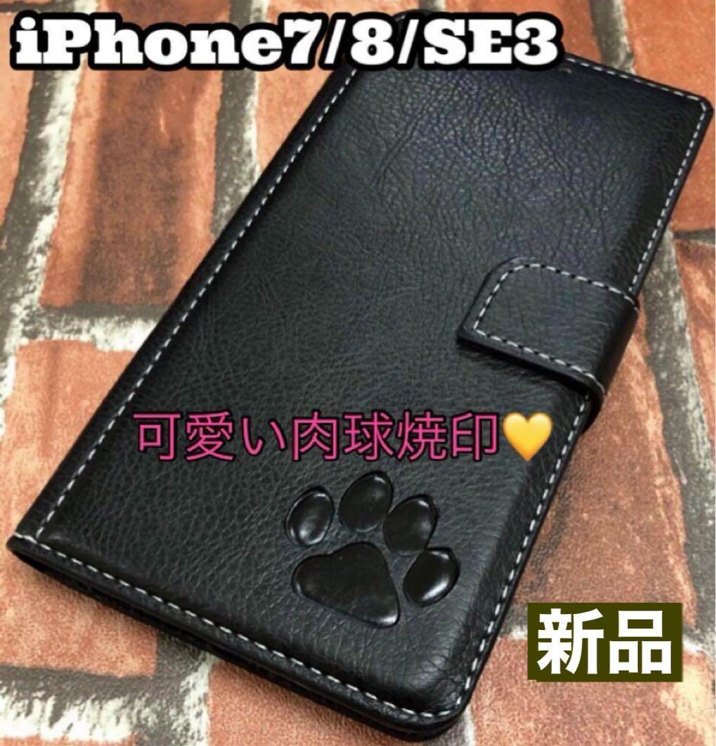 - 【iPhone7/8/SE3専用】肉球焼印手帳ケース新品未使用【ブラック】