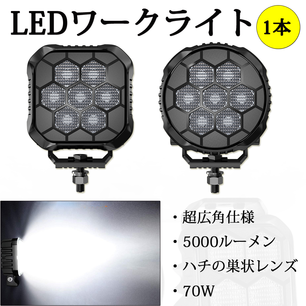 - 新登場 LEDフォグランプ ワークライト 爆光 作業灯 超広角タイプ 自動車 トラック 大型車 12/24V 70W 5000ルーメン ホワイト 防水 防塵 1本