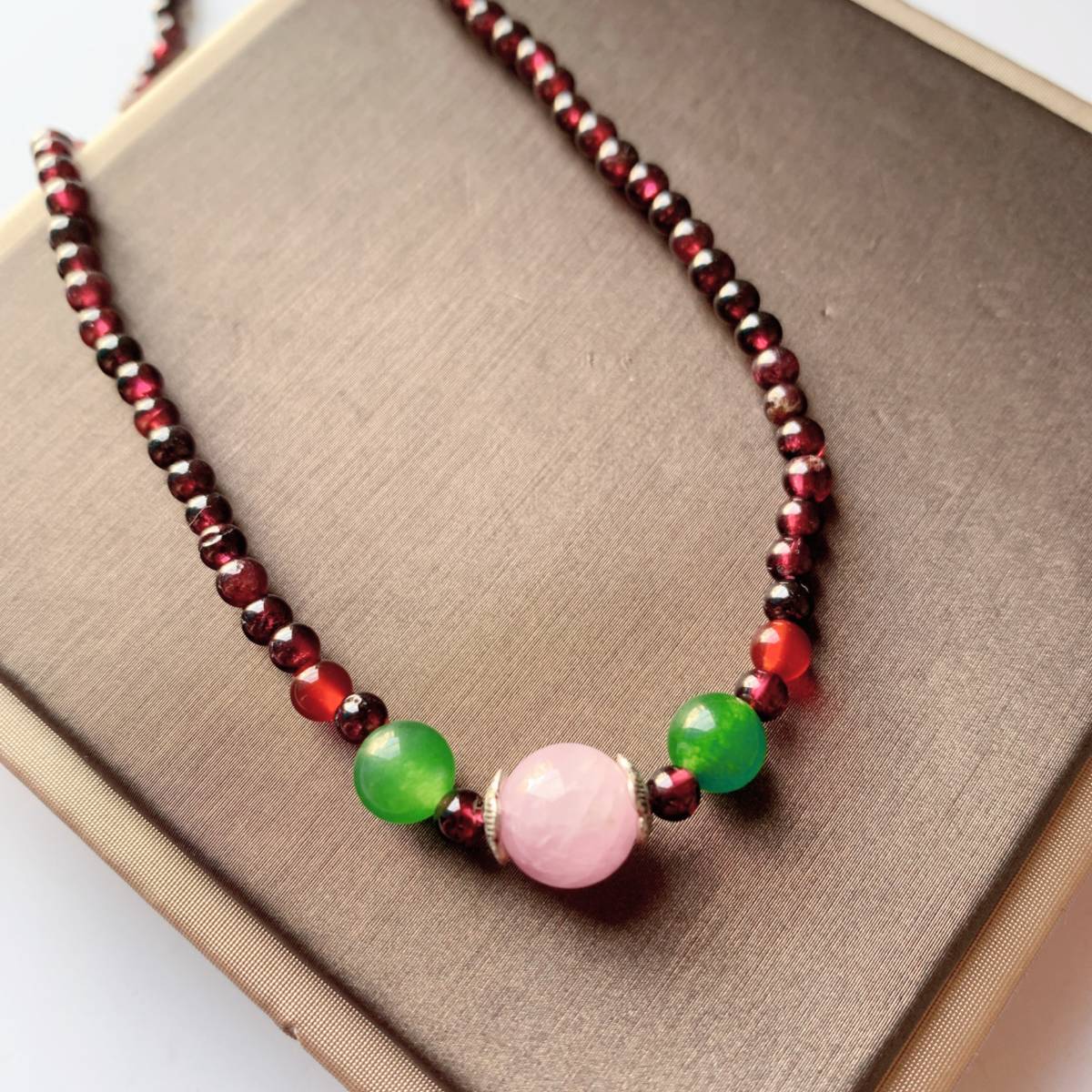 - ◇ガーネット+台湾碧玉+クンツァイト(リシア輝石)+赤瑪瑙◇ネックレス◇パワーストーン◇天然石◇巾着袋付き◇プレゼントにも010P122602