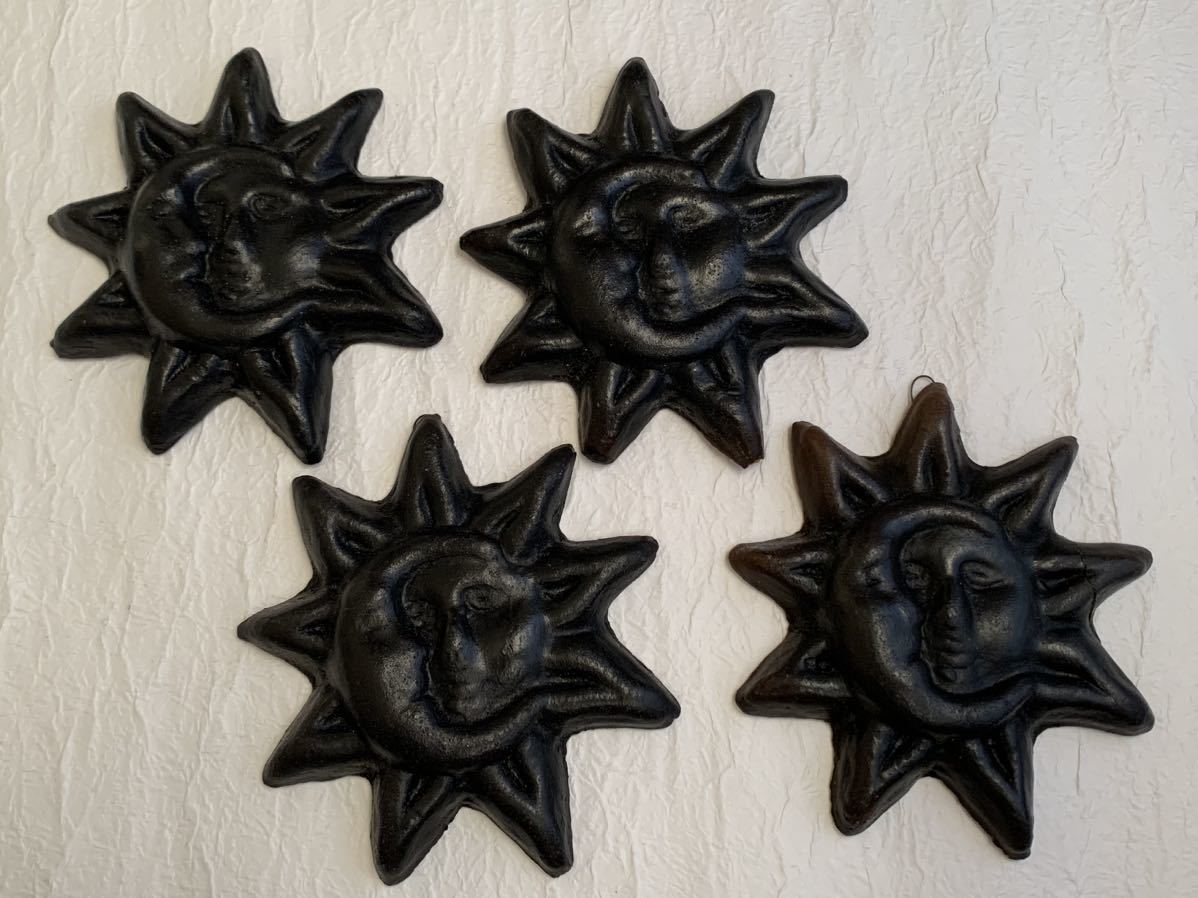 - 訳あり まとめ売り 壁かけ 太陽 セット 4個セット 黒土 黒粘土 メキシコ バロネグロ オアハカ 陶器 壁飾り 開運 ジャンク